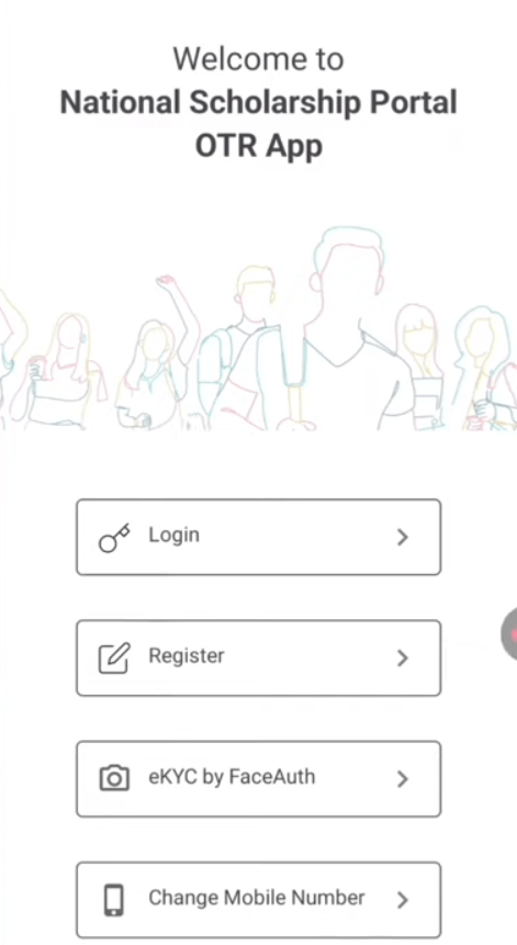 Download ‘NSP OTR’ app from Play Store. Complete registration with mobile OTP and eKYC using Aadhaar face authentication using ‘AadhaarFaceRD’ app.